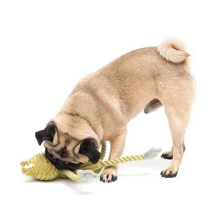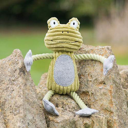 様々な噛み心地が楽しめるカエルのぬいぐるみ。頭と体の部分はやわらかく、手足は硬いロープなので丈夫。ひっぱりっこ遊びにも最適です。お腹にスクウィーカーが入っているので、いろいろな遊び方が楽しめます。