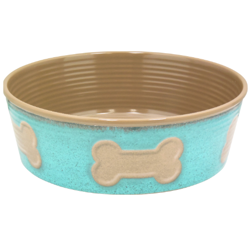 まるで陶器のようなプリントの丈夫なメラミン樹脂ボウル。カタカタ音を防ぐための滑り止め付き。
