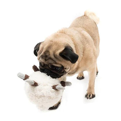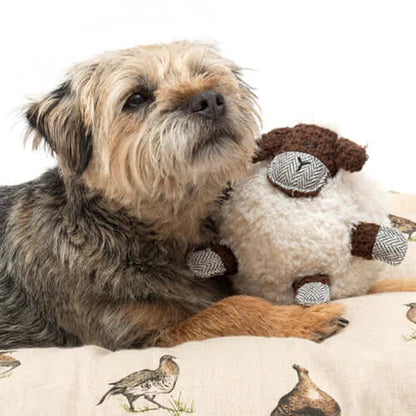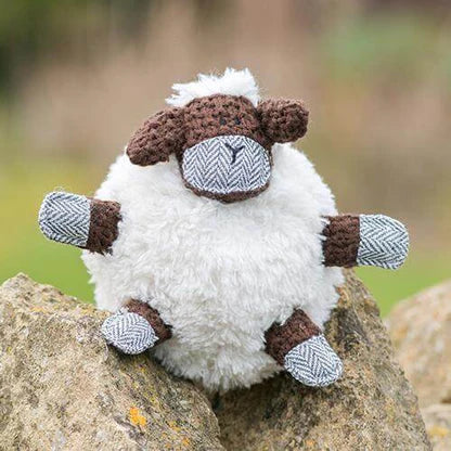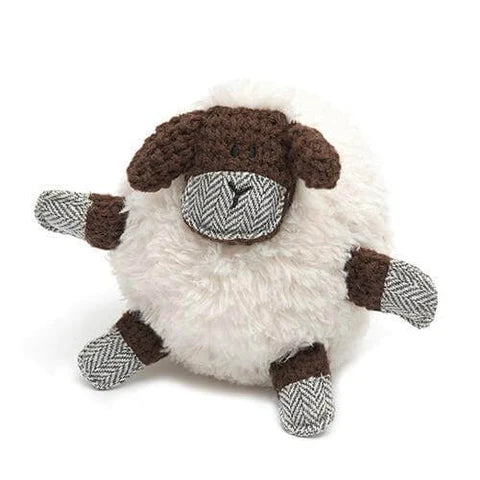 かぎ針編みとツイード生地の顔と手足が特徴的な、フワフワで大きなヒツジのぬいぐるみ。ボディはやわらかく、ふっくらとした丸い形なので噛みやすい形。お腹にはスクウィーカー、足にはカシャカシャ音がなるクリンクル素材が入っているので飽きずに長く楽しめます。素材:ポリエステル原産国:中国サイズ:約13cm